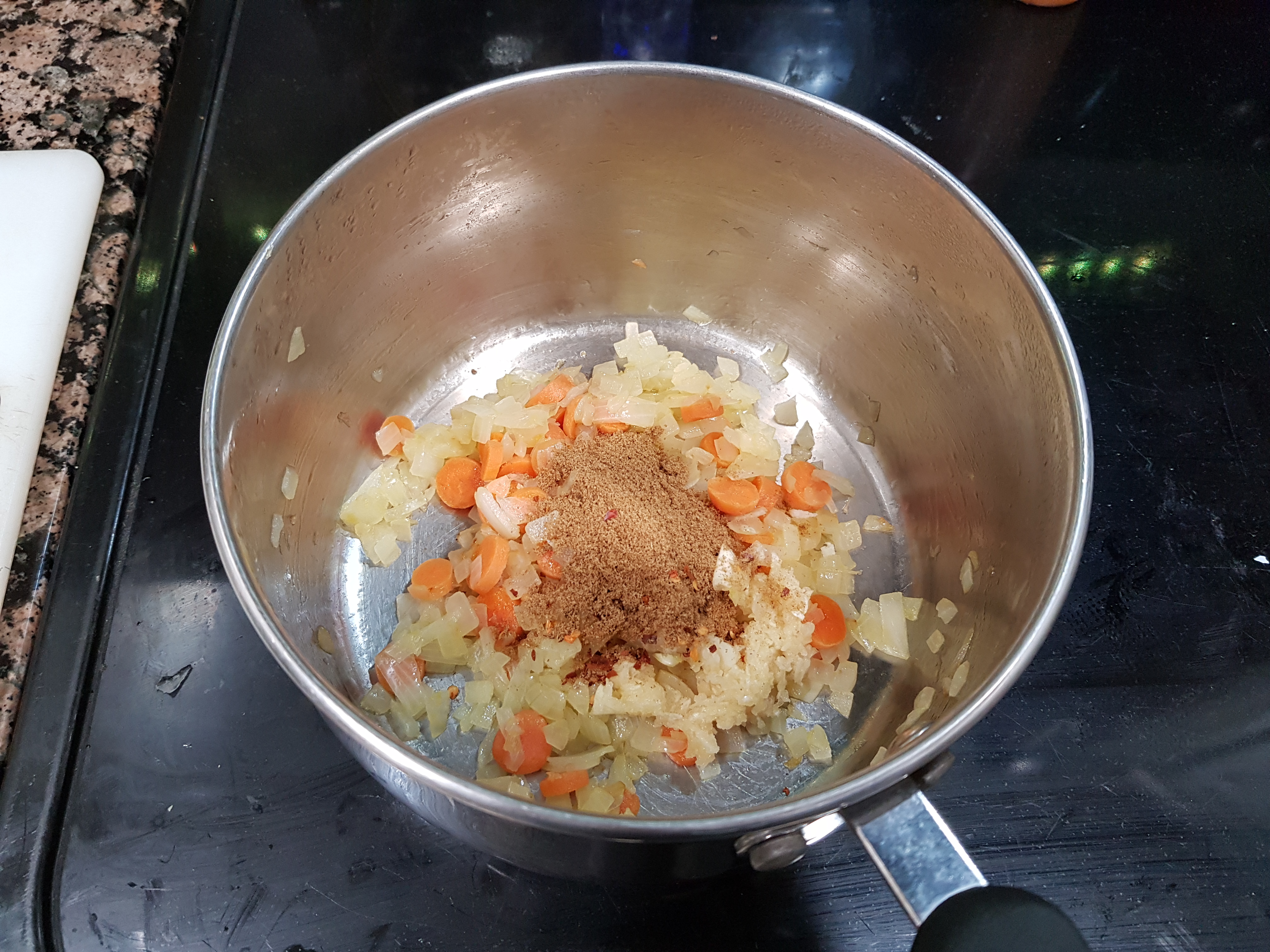 Step 3: Stir in the garlic, cumin and red pepper flakes and cook until fragrant (about 30 seconds).