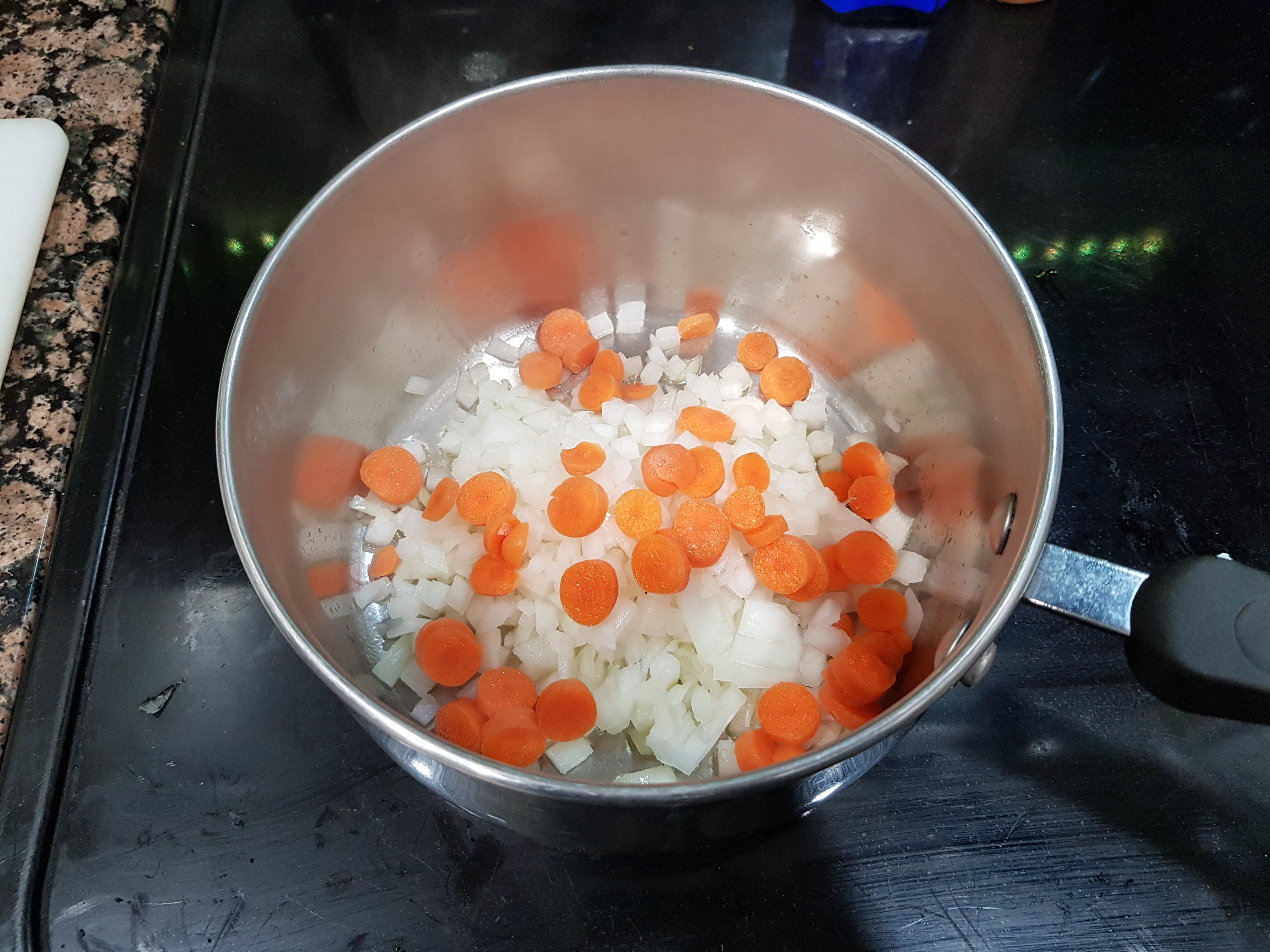 Step 1: Start cooking the rice before you do anything else. The curry cooks quickly so you want to give the rice time to cook so that it is ready when the curry is.