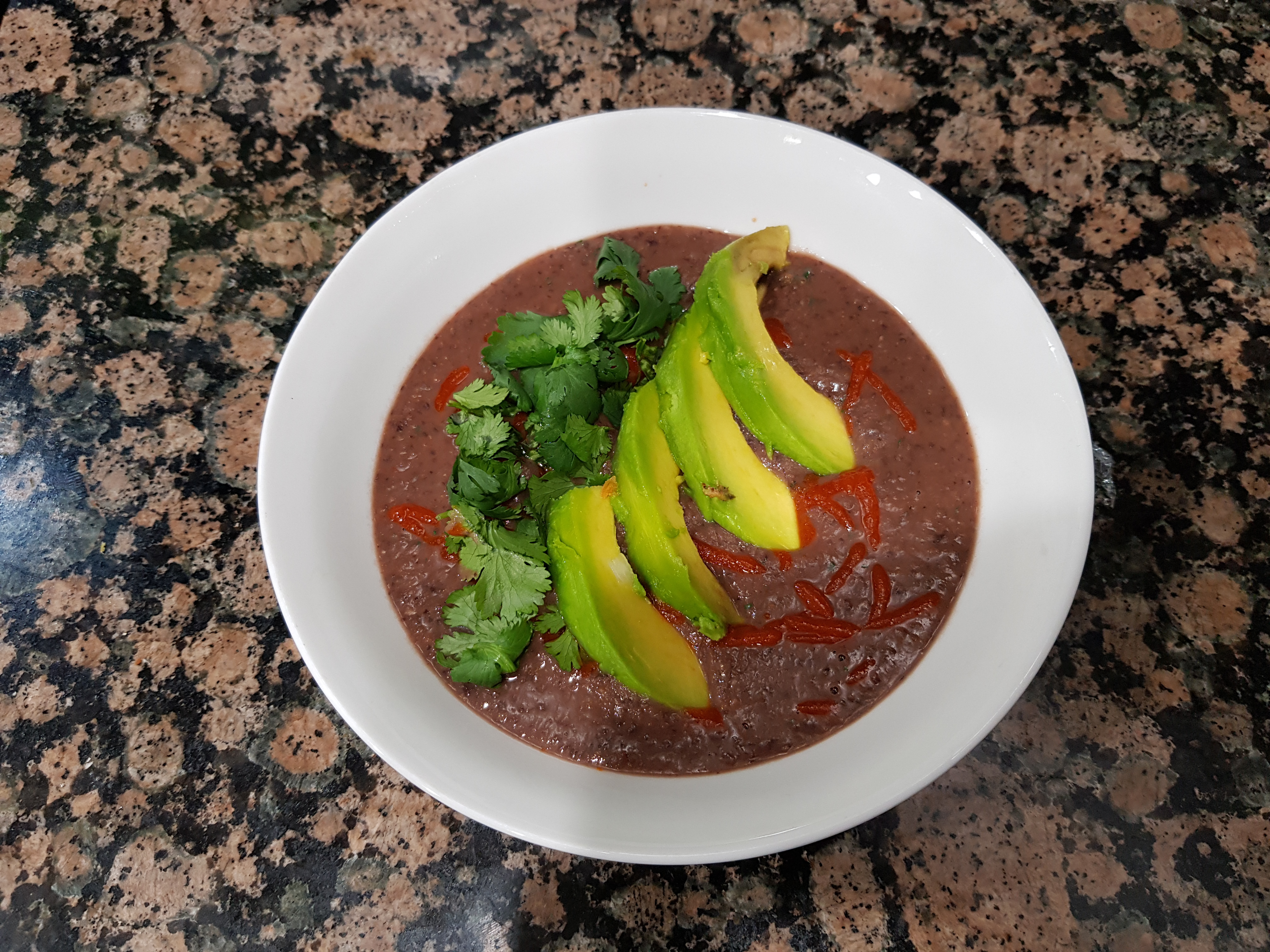 Step 6: Return the pureed soup to the pot and add in any additional seasonings to taste. Serve with your choice of toppings (I went with Florida avocado, sriracha, and extra cilantro).
