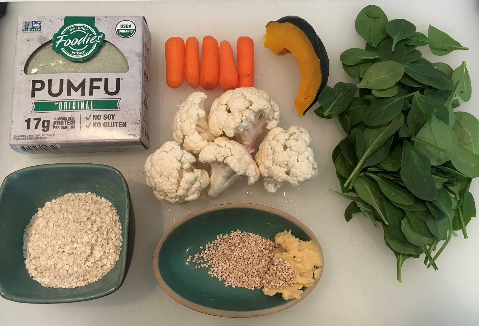 Protein: 1 oz. pumfu, which is soy-free and made with pumpkin seeds!