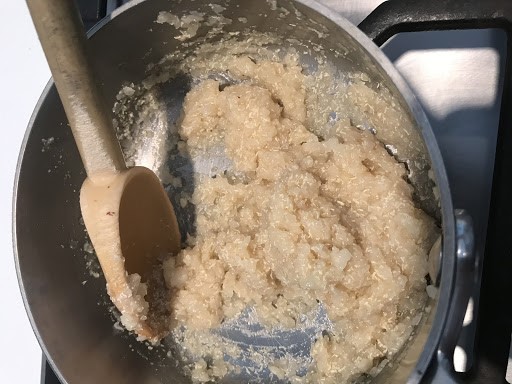 Step 3: Heat a skillet with 1 tbsp of oil over medium heat. After a couple of minutes, toss in the chopped onion. Cook for two minutes until it starts to become translucent.