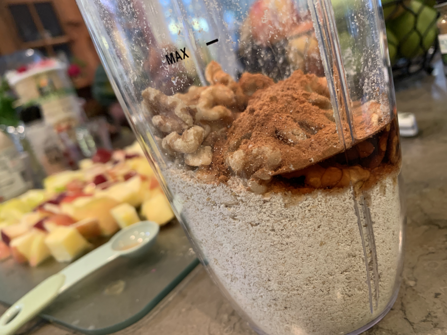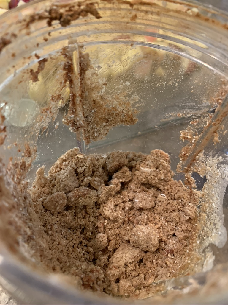 Step 3: Blend or mix in the remaining crumble ingredients, adding more or less cinnamon, maple syrup, and salt as desired.