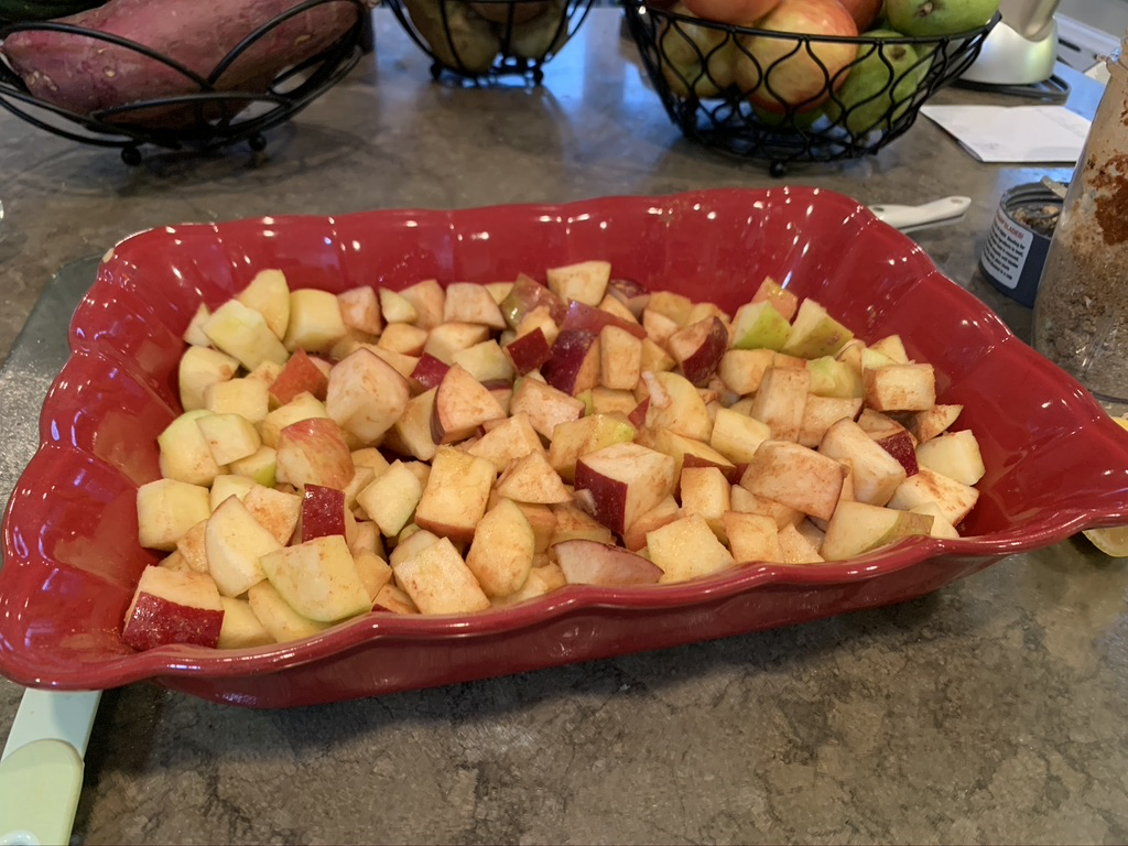 Step 5: Mix apples with the rest of the mixture ingredients in a baking dish.