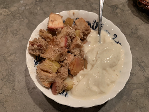 Sometimes we want to eat something warm, sweet, and comforting––something that feels close to home. At the same time, we want to indulge guilt-free, in terms of both our health and the carbon footprint of our food. To appease these cravings, look no further than this apple crisp recipe and look fast because most apples are almost out of season! This recipe is not only delicious, fairly easy to make, and highly nutritious but also a great way to practice sustainable dining.
