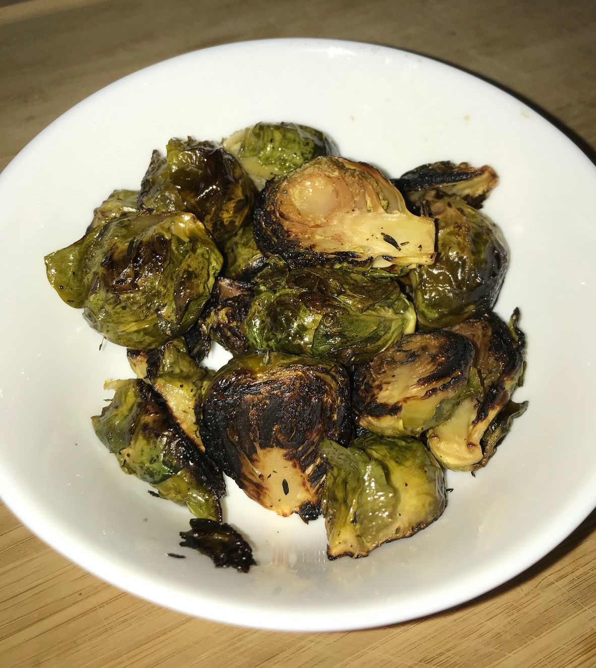 Roasted Vegetables: I coated Brussels sprouts with olive oil, salt, pepper, and thyme. Then I baked them at 415°F for 30-45 min.