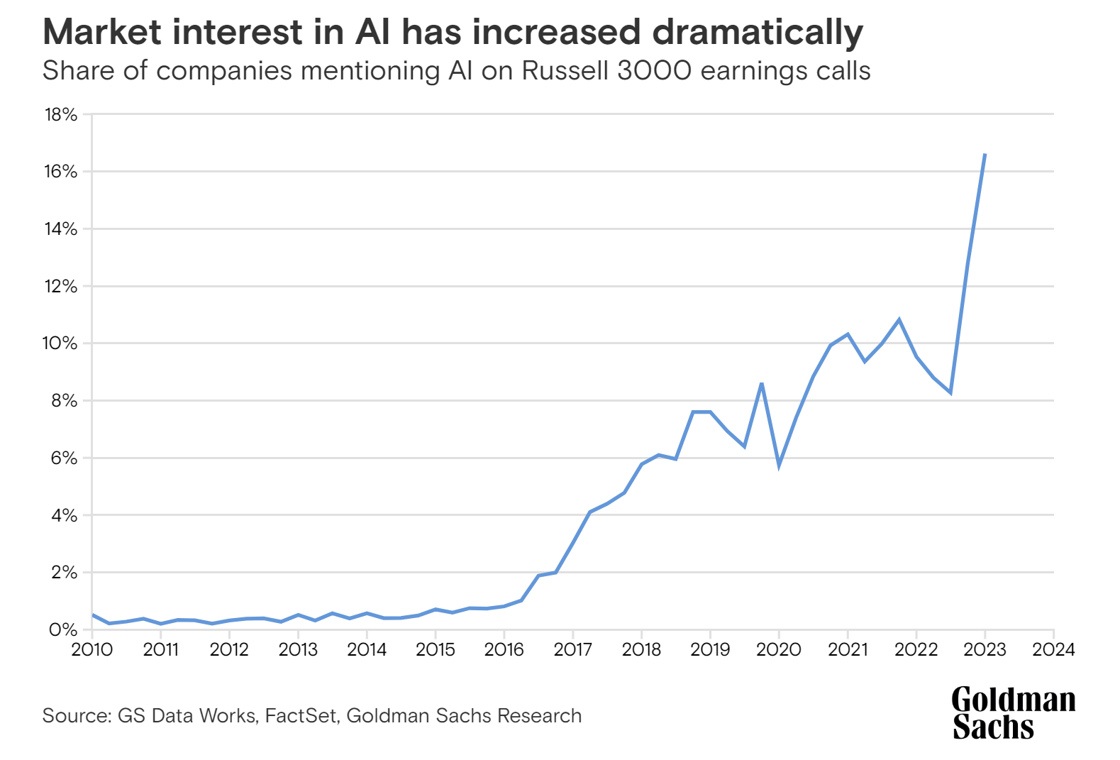 Since the release of OpenAI’s ChatGPT in 2022, enthusiasm about the seemingly endless possibilities of artificial intelligence has taken the world by storm. AI is certainly not a new technology, but technological breakthroughs for large language models over the past 12-18 months have spurred excitement for essay-writing students and magnificent seven* shareholders alike; placing a new spotlight on the technology.